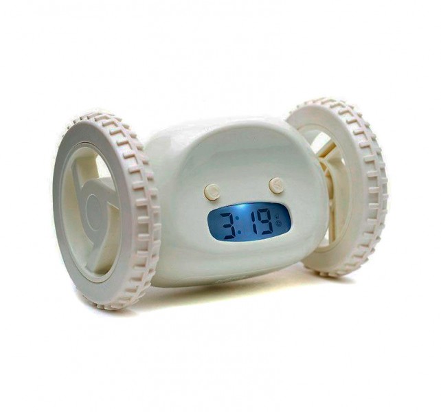 Будильник на коліщатках - це не просто годинник, це цілком функціональний будильник який точно допоможе Вам прокинуться. Робота будильника заснована на тому, що під час спрацювання будильника він починає їздити по кімнаті і в цей час грає мелодія, такий ефект точно допоможе прокинуться.