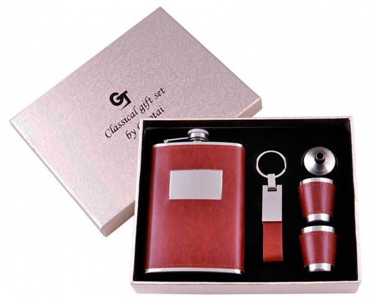 Характеристики товару Набір подарунковий фляга/брелок/стопки/лійка