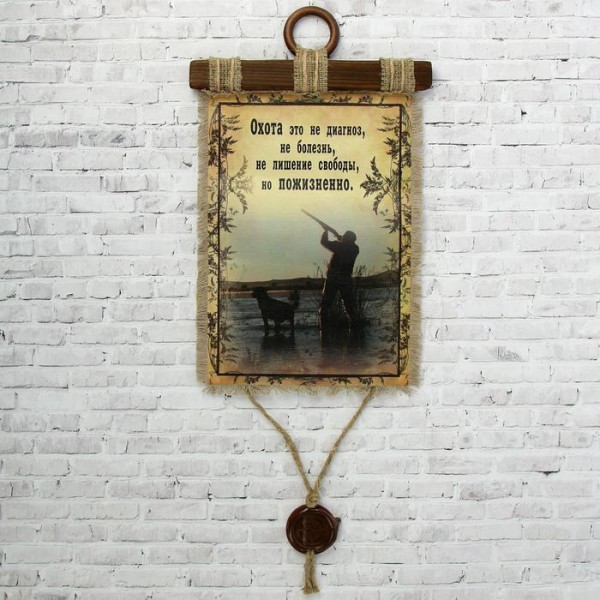 Сувенір сувій "Полювання це пожиття" незвичайний і жартівливий подарунок ручної роботи. Займе почесне місце у квартирі.
