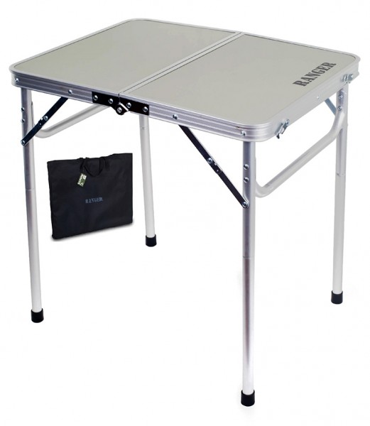 Компактний у складеному вигляді, але досить великий у розкладеному – стіл. Такий стіл знайде застосування на відпочинку за містом, на пікніку на дачній ділянці, на риболовлі, а також розкладний стіл може стати в нагоді для прийому гостей. Місця для зберігання столу потрібно зовсім небагато. Та й у багажнику легкового авто розкладному столу завжди знайдеться місце. Стіл складається навпіл так, що перетворюється на невелику валізку.