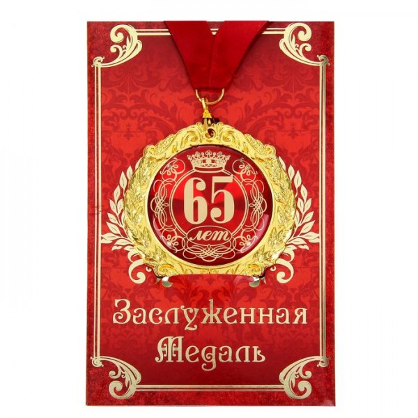Оригинальная медаль – отличная награда для самых достойных представителей своего времени. Эксклюзивный сувенир станет достойным украшением вечера и поможет создать незабываемое поздравление! Медаль на открытке "65 лет" изготовлена из золотистого металла, идет в комплекте с лентой, упакована в открытку с торжественным приветствием для адресата.