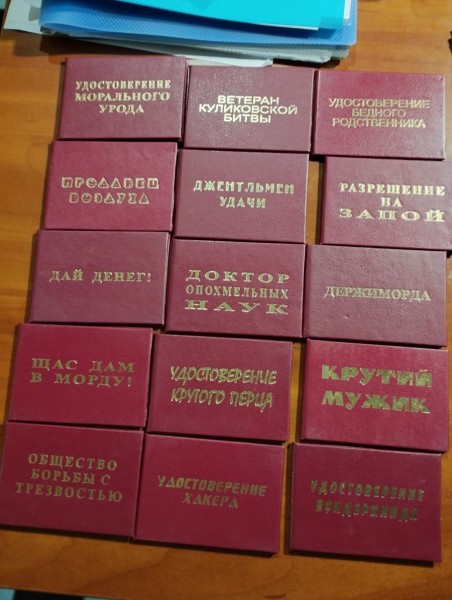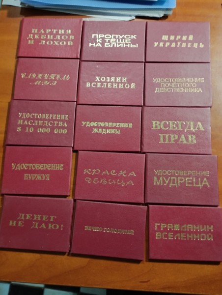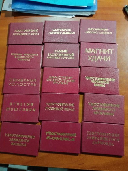 Жартівливе посвідчення ― абсолютно незвичайний дешевий подарунок. Посвідчення можна дарувати учасникам змагань та вікторин. Оскільки всі їхні учасники не повинні піти без хоча б невеликого і недорого дару. Будь-яке з цих жартівливих посвідчень, можна презентувати і просто так, без будь-якого приводу і приводу.