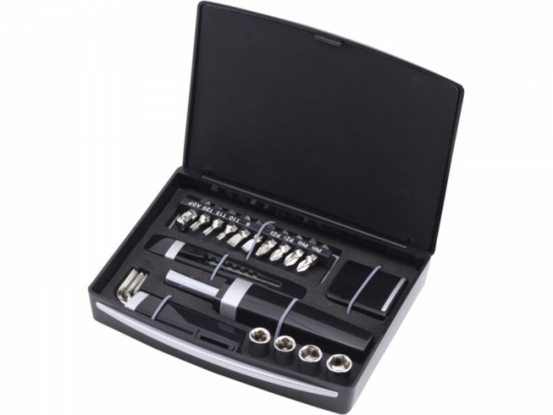 Набір потрібних у побуті інструментів у кількості 20 штук чудово розміщується у міцному та компактному футлярі. Набір можна брати із собою, він не займе багато місця. В асортименті два кольори.