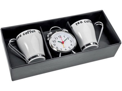 Набір для сніданку: 2 чашки по 250 мл, будильник