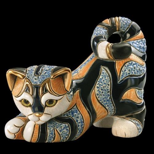 Кіт смугастий Small Wildlife Dr012sw-51 - уругвайська фігурка ручної роботи у вигляді кішки, що зігнулася. Матеріал виробу-кераміка, розписаний індивідуально вручну фарбами та позолотою, з чітко опрацьованими деталями. Колір-оранжевий, блакитний та білий.