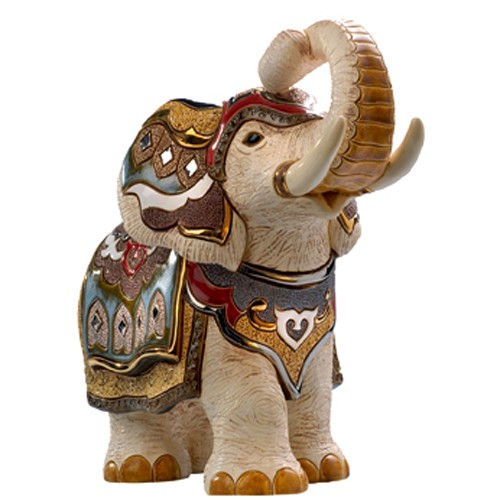 Слон Індійський Білий Large Wildlife Dr457-21 – керамічна фігурка ручної роботи, створена уругвайськими майстрами в лімітованому випуску, у вигляді індійського слона з піднятим хоботом. Розписано вручну позолотою та фарбами, з індивідуальним малюнком. Основний колір - білий, деталі - коричневий та блакитний.
