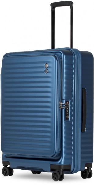 Середня валіза з колекції Celestra - сучасний екземпляр, що поєднав у собі безкомпромісну якість, зручність та функціональність. Глибокий синій колір і солідний зовнішній вигляд, матове покриття з легким блиском. На лицьовій частині розташована кришка, що відкриває доступ до внутрішнього простору – абсолютна зручність при заповненні. Вбудований TSA замок із кодовим блокуванням. Модель виготовлена з полікарбонату, найміцнішого та ударостійкого матеріалу. Чотири подвоєні прогумовані колеса, для плавного та легкого ходу. Блискавка-розширювач, що створює додатковий обсяг. Три ручки - висувна та дві для перенесення. Об'єм 72/80л, вага 4,4кг, розміри-46,5x66,5x28см