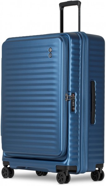 Велика, сімейна валіза з колекції Celestra - унікальний екземпляр, що поєднав у собі безкомпромісну якість, зручність та функціональність. Глибокий синій колір і солідний зовнішній вигляд, матове покриття з легким блиском. На лицьовій частині розташована панель, що відкриває доступ до внутрішнього простору – абсолютна зручність при заповненні. Вбудований TSA замок із кодовим блокуванням. Модель виготовлена з полікарбонату, найміцнішого та ударостійкого матеріалу. Чотири подвоєні прогумовані колеса, для плавного та легкого ходу. Блискавка-розширювач, що створює додатковий обсяг. Три ручки - висувна та дві для перенесення. Об'єм-103/112л, вага 5,4кг, розміри 52,5x76,5x30см