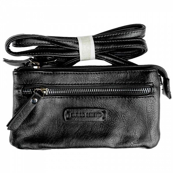 Маленька шкіряна сумка Enrico Benetti – це сучасний комфортний аксесуар. Наплічна сумка практична та оригінальна. Зовні на передній стінці знаходиться зручна і комфортна кишенька, що закривається на блискавку. Розмір: 27x23x10см. Колір – Black (чорний).