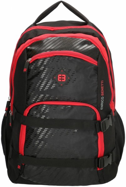 Результатом вдалого тандему дизайну та молодіжного стилю став рюкзак Enrico Benetti із серії NATAL. Виріб, який підходить для будь-якого випадку. Виготовлений із високоміцного матеріалу. Міцні лямки з регульованою довжиною та ручка для перенесення. На лицьовій стороні вертикальна кишеня на блискавці. Два великі відділення всередині, відсік для ноутбука 17". Об'єм рюкзака 35 л. Розмір: 32x46x24см. Колір - Black-Red (чорний з червоними блискавками). Виробник: Нідерланди.