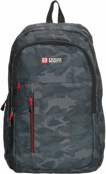 Рюкзак Enrico Benetti STOCKHOLM Eb62081 001 з відділ. для ноутбука 17,3 камуфляжний - місткий виріб великого розміру. Модне забарвлення камуфляжу в чорно-синіх тонах і мінімалістичний дизайн. Виготовлено з поліестеру - він щільний, міцний і зносостійкий. Рюкзак оснащений двома відділеннями на блискавці, секцією під ноутбук 17*3 та двома кишенями на передній частині. Широкі плечові ремені регулюються. Розміри-(30x48x16см), об'єм-23л.