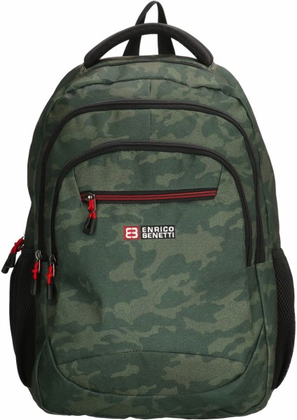 Рюкзак Enrico Benetti STOCKHOLM Eb62082 023 з відділ. для ноутбука 17,3 камуфляжний - місткий виріб великого розміру. Модне забарвлення камуфляжу в зелених тонах і мінімалістичний дизайн. Виготовлено з поліестеру - він щільний, міцний і зносостійкий. Рюкзак оснащений двома відділеннями на блискавці, секцією під ноутбук 17*3 та двома кишенями на передній частині. Широкі плечові ремені регулюються. Розміри-(32x48x18см), об'єм-25л.