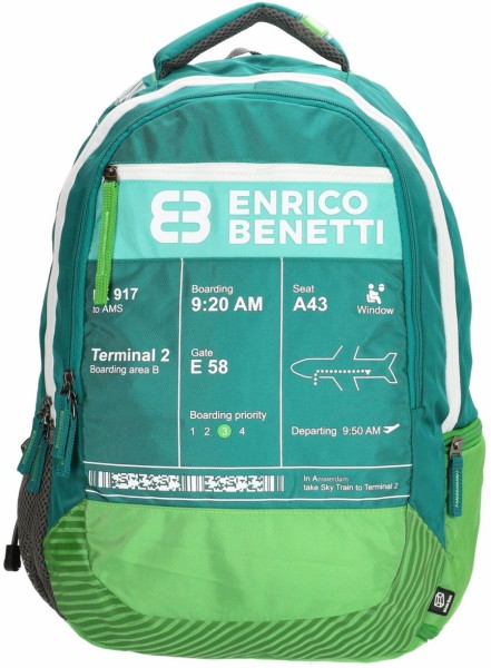 Рюкзак з відділом. д/ноутбука 17" Enrico Benetti WELLINGTON Eb47193 023 бірюзовий - оригінальний рюкзак великого розміру. Основний бірюзовий колір з різними написами і класичний дизайн. Він володіє двома місткими відділеннями, в одному є секція під ноутбук 17 дюймів. для перенесення. Носка рюкзака буде комфортною завдяки зручним наплечним ременям.