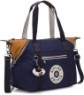 Містка сумка середнього розміру, гарний варіант у дорогу. Унікальний сучасний дизайн з емблемою бренду у вигляді нашивки, мінлива форма та приголомшливий синій колір із коричневими вставками. Може набувати прямокутної форми завдяки куточкам на блискавці. Матеріал-поліамід, міцний, зносостійкий та довговічний, не згинається і не помається. На лицьовій частині розміщена кишеня для різної дрібниці. Усередині розташоване велике об'ємне відділення, і маленька автономна кишеня для смартфона або ключів. Для перенесення створені дві довгі ручки та наплічний ремінь. Розміри-44 * 27 * 20, об'єм - 21 л, вага - 0,55 кг.