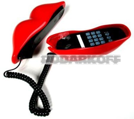 Діючий телефон – губи. Забавний телефон-у вигляді симпатичних губ стане оригінальним і, одночасно, вельми практичним подарунком. Такий подарунок можна подарувати коханій дівчині, дружині або просто дорогій людині. Прикольний подарунок Телефон Губи та головне дуже практичний подарунок дівчині чи жінці на день народження. Телефон, як видно з назви, зроблений у вигляді яскраво-червоних і червоних, пристрасних і усміхнених губ. При цьому нижня губа є базою з клавіатурою, а верхня губа - відповідно - трубкою прикольного телефону. Коли трубка не використовується і лежить на базі, не з першого погляду можна здогадатися, що ці великі, призовно яскраві «губи» не що інше, як зручний телефон з повним набором функцій. Набір: 1. База телефону. 2. Телефонна трубка. 3. Шнур телефонної лінії («євро»). 4. Шнур трубки. 5. Інструкція. 6. Пакувальна коробка.