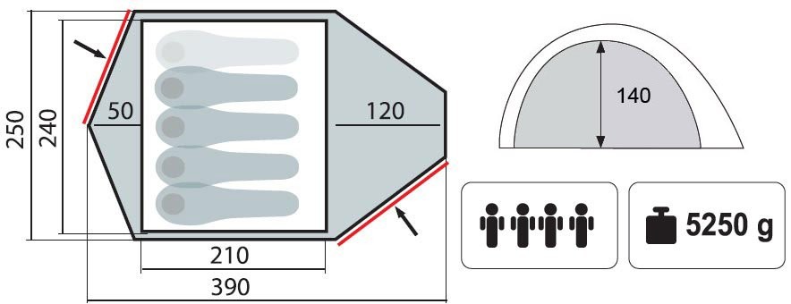 - Тент: 100% поліестер, 75D/190T WR PU 3000 мм у ст