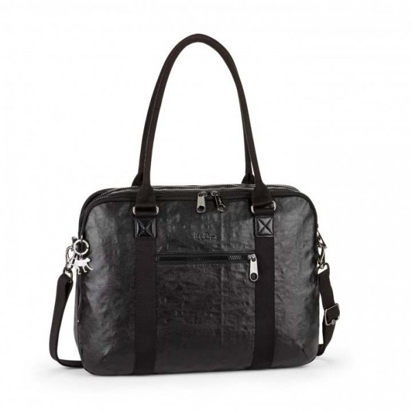Ділова сумка середнього розміру, це необхідний аксесуар для дівчини, що працює. Солідний дизайн, блискучий чорний колір з ефектом пом'ятості та класична форма. Виконано з поліаміду - це легкий та міцний матеріал, довговічний та стійкий до зношування. Зовні розташовані дві довгі ручки, і знімний наплічний ремінь. Усередині знаходиться одне велике відділення з відділом під ноутбук або планшет, також кілька секцій під різну дрібницю, ключі, смартфон. Легко вмістить у собі ділові документи та особисті речі. Розміри-39x30x12, об'єм-13 л, вага-0,76 кг.