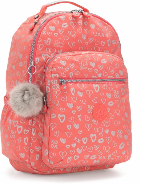 Рюкзак середнього розміру - важливий аксесуар для мандрівника, він може сміливо замінити звичну валізу, підійде в ручну поклажу. Вишуканий, спокійний дизайн та смачний кораловий колір із зображенням сердечок. Виготовлено з надійного та інноваційного матеріалу-поліаміду, він практичний у щоденному носінні, міцний і легкий, зносостійкий. Усередині знаходиться одне містке відділення з відділом під ноутбук, у передній об'ємній кишені розмістилися кишеньки під смартфон, картки та канцелярію. З боків розташовані відкриті кишеньки. Комфорт використання забезпечують регульовані плечові ремені та зручна, опрацьована спинка. Розміри-35x44x20,5см, об'єм-27 л, вага-0,64 кг.