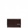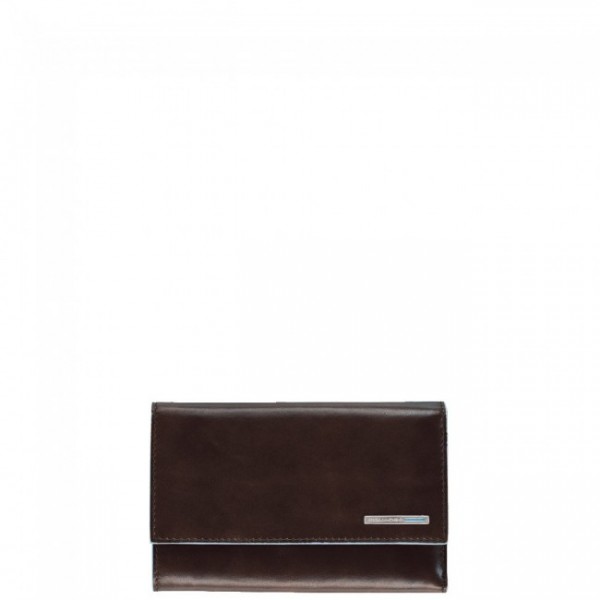 Багатофункціональне компактне горизонтальне портмоне. Матеріал виготовлення-теляча шкіра гладкого дублення, відполірована до глянцю, схильна до механічних пошкоджень. Всі зовнішні шви виробу запаяні вручну рідким каучуком насиченого блакитного кольору за унікальною запатентованою технологією компанії Piquadro. кнопка.При розкритті-перша частина-клапан,всередині-4 вертикальні осередки для карт,друга частина-середина-горизонтальна об'ємна монетниця у вигляді конвертика з клапаном на кнопці,розміщена вертикально,завантаження-горизонтальна,третя частина має горизонтальний владиш,відкидається зліва направо ,на вкладиші-з обох сторін по вертикальній кишеньці для документів і по 2 горизонтальні осередки для карт. . Усередині осередків для ка
