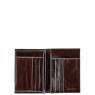 Вертикальне портмоне без монетниці. Матеріал виготовлення - теляча шкіра гладкого дублення, відполірована до глянцю, схильна до механічних пошкоджень. ліворуч-велика кишеня-сітка для документів (можна помістити паспорт старого зразка або посвідчення водія), далі вкладиш з кишенею-сіткою трохи меншого розміру, наступне розкриття - в дзеркальному відображенні - по вертикальній шкіряній кишені для документів і по 3 горизонтальні осередки для кредитних карток .Купюрниця-подвійна, глибока, завантаження купюр-зверху, поміщаються купюри будь-якого номіналу і будь-якої з валют. При використанні-купюри згинаються навпіл. ,5*12,5*2.Колір-коричневий.