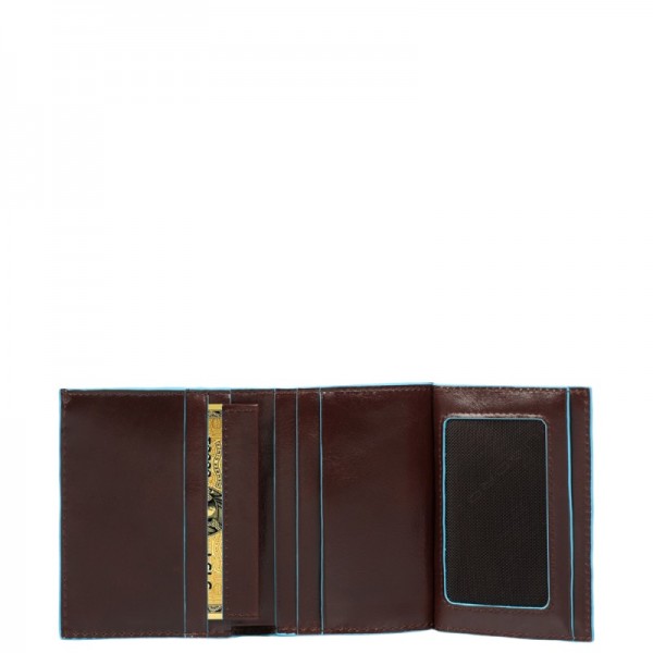 Маленький вертикальний портмоне кишенькового формату для купюр дрібного номіналу. Матеріал виготовлення-теляча шкіра гладкого дублення, відполірована до глянцю, схильна до механічних пошкоджень. Всі зовнішні шви виробу запаяні вручну рідким каучуком насиченого блакитного кольору за унікальною запатентованою технологією компанії Piquadro. 2 горизонтальні осередки для карт, під ними - по дрібній кишеньці для документів. -пластиковий знімний картхолдер зі шкіряною основою, вставляється в будь-яку з осередків. вилучення .Розмір-7 * 9,3 * 1,5.