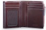 Тонкий вертикальний портмоне компактних розмірів. Зовнішній матеріал виготовлення - теляча шкіра гладкого дублення, відполірована до глянцю, схильна до механічних пошкоджень. ліворуч-вертикальна кишеня з сіткою для документа і 1 вертикальна комірка для карти, під ними-потайна кишенька для документів. .Вставляється картхолдер в спеціальний відсік ,розташований по лівому зовнішньому краю портмоне.Справа портмоне-3 вертикальні осередки для карт і дві бічні кишеньки різної глибини для документів..По правому зовнішньому краю потрмоне-тонка монетниця на пластиковій блискавці.Купюрниця розташована зверху має 2 відсіки, попереднє