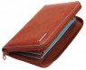 Універсальне крупне портмоне на блискавці з горизонтальним завантаженням. Матеріал виготовлення-теляча шкіра гладкого дублення, відполірована до глянцю, схильна до механічних пошкоджень. гармошки, стримується з боків. При розкритті-ліворуч-горизонтальна купюрниця для купюр будь-якого номіналу будь-якої з валют, купюри завантажуються без згину. на блискавці, на зовнішній стінці якої - кишенька з трьома осередками для карт, третя перегородка - кишеня під сіткою для паспорта або посвідчення водія. Далі - ще одна купюрниця і такий же картхолдер. блискавки-високоміцний пластик.Розмір-10*19*2.Колір-помаранчевий.
