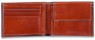 Горизонтальне портмоне з додатковими функціями. Матеріал виготовлення - теляча шкіра гладкого дублення, відполірована до глянцю, схильна до механічних пошкоджень. вшитий вкладиш, відкидається знизу вгору, З одного боку - тонкі горизонтальні осередки у вигляді прорізів у шкірі для 3 кредиток. Справа портмоне-монетниця у вигляді вертикального конвертика з об'ємними краями під клапаном на кнопці, під монетницею збоку і зверху-відсіки для документів. краю, при використанні купюри згинаються навпіл.