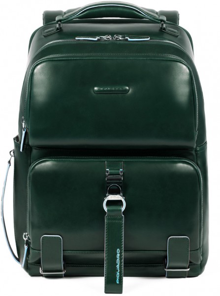 Наплічник для ноутбука шкіряний Piquadro BL SQUARE CA4894B2_VE6. Міський рюкзак зеленого кольору, з відділенням для ноутбука 14 дюймів та iPad. Виготовлений з гладкої телячої шкіри з восковим просоченням, що захищає від вологи та забруднень. Блакитний кант надає рюкзаку стильного вигляду і робить його впізнаваним. Рюкзак поєднує у собі чудові функціональні можливості та елегантний дизайн. Два великі відділення на блискавці, в одному з яких передбачені відсіки для телефону та письмового приладдя. На лицьовій частині дві накладні кишені на блискавці. На задній частині рюкзака тримач телескопічної ручки валізи. Регульовані плечові ремні. Високоякісна шкіра. Колір зелений. Розміри: 30х41х18 см. Вага: 1,41 кг. Виробник: Італія Гарантія: 1 рік