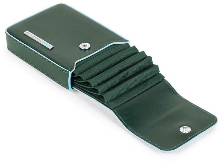 Кредитниця казана Piquadro BL SQUARE PP4835B2R_VE6. Кредитниця висувна зеленого кольору. Практична та сучасна модель стане справжнім подарунком для шанувальників ергономічних та компактних аксесуарів. Виготовлена з гладкої телячої шкіри з восковим просоченням, що захищає від вологи та забруднень. Блакитний кант надає кредитниці стильного вигляду і робить її відомою. Кредитниця поєднує у собі чудові функціональні можливості та елегантний дизайн. Підійде людям, які цінують практичні та якісні речі. Аксесуар має RFID захист. Вона забезпечує збереження даних та коштів від незаконного зчитування їх шахраями. Матеріал: Високоякісна шкіра. Колір зелений. Розміри: 7x10, 5x2 см. Вага: 0.056 кг Виробник: Італія Гарантія: 1 рік