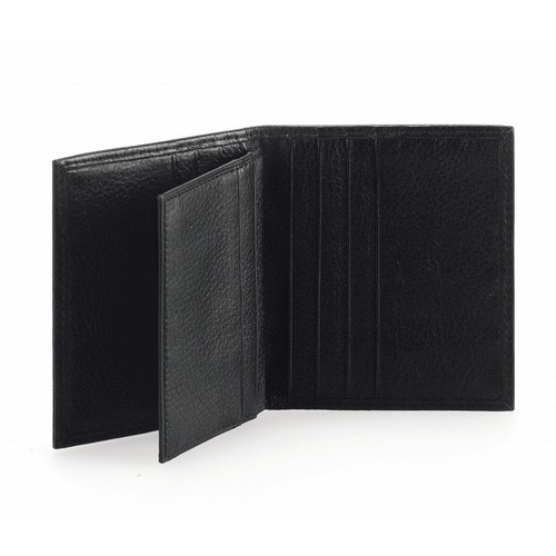 Стильний аксесуар в стилі мінімалізму. Зовнішній матеріал виготовлення - теляча шкіра фактурного дублення, стійка до механічних пошкоджень. Має вигляд книжки з вкладишем всередині. Розрахована на 8 пластикових карт. ,з зворотного боку вкладиша- дві осередки і внутрішня потайна кишенька для документів,далі 3 осередки для карт і кишеньок глибше.Всі осередки розташовані вертикально,всередині осередків-водонепроникний,ковзкий текстиль для комфортного вилучення карт і документів.Зверху кредитниці-купюр купюр будь-якого номіналу,внутрі-водонепроникний текстиль.Розмір-кишеньковий,9*10.колір-чорний.