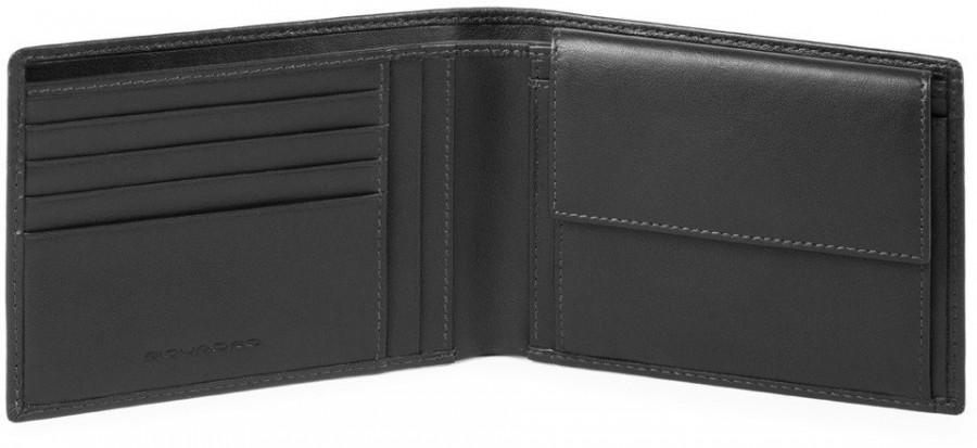 PU257UB00R_N. Компактне горизонтальне портмоне з необхідним набором функцій з колекції URBAN. Матеріал виготовлення - гладка теляча шкіра. Виготовлено за принципом книжки. При розкритті-ліворуч-4 осередки для кредитних карток, праворуч-об'ємна монетниця у вигляді вертикального конвертика з об'ємними краями під клапаном на кнопці. не виступаючи по верхньому краю. Дана модель має особливість-функцію RFID захисту, що являє собою чіп радіочастотної ідентифікації, вшитий під підкладкою портмоне, який блокує зчитування особистої інформації безконтактних карток. вилучення. Розмір-13 * 9,5 * 2. Колір верха-чорний, підкладки-сірий.
