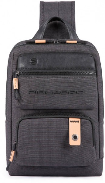 Рюкзак PIQUADRO чорний BLADE CA4864BL_N - монорюкзак для носіння на одному плечі, легкий та зручний. Виготовлено із міцного та водонепроникного текстилю, елементи виконані зі шкіри. Спокійний чорний колір та оригінальний дизайн. Має одне відділення з секцією для планшета, на лицьовій частині розташовані дві об'ємні кишені на блискавці. Плечовий ремінь досить широкий та регулюється. Розміри-21,5 * 30 * 9,5 см, вага - 0,33 кг.