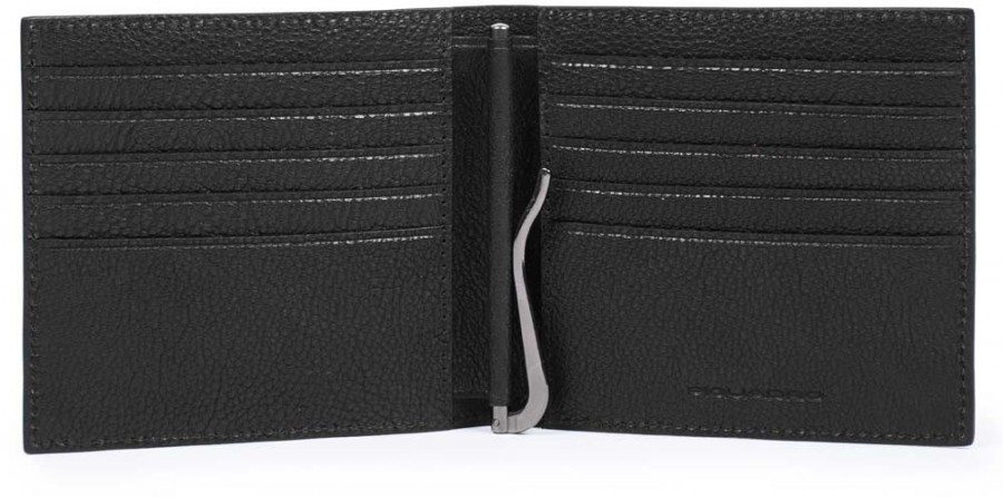 PU1666B3R_N.Компактное портмоне из коллекции BK SQUARE.Материал иготовления-телячья кожа с нaтуральным рисунком,устойчивая к механическим повреждениям..Все наружные швы изделия запаяны вручную жидким каучуком черного цвета по уникальной запатентованной технологии компани Piquadro.Изготовлено по принципу книжки.При раскрытии-с обидва боки в дзеркальному відображенні по 5 горизонтальних осередків для карт, під ними-по кишеньці для документів. вилучення. Розмір-9,5 * 9 * 1. Колір-чорний.