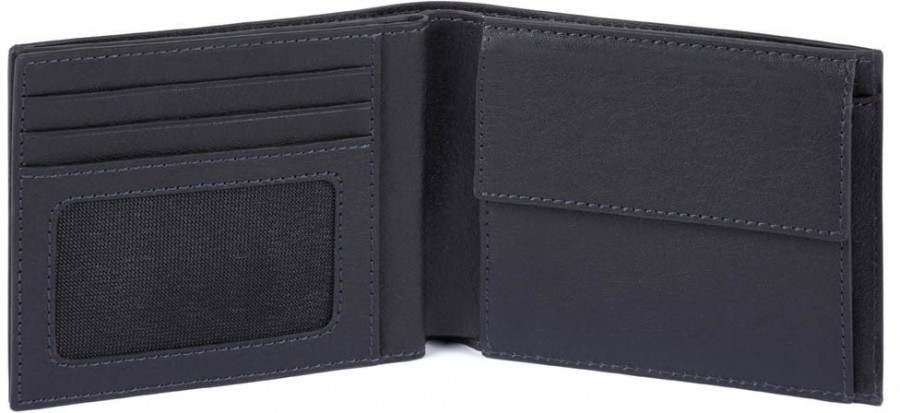 Портмоне PIQUADRO синій BK SQUARE/Blue Портмоне з відділ. для монет та 7 кред.карт з RFID захистом (11,5x9,5x2)
