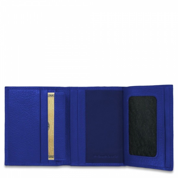 PU3244P15_BLU. Маленьке вертикальне портмоне кишенькового формату для купюр дрібного номіналу з колекції PULSE. Матеріал виготовлення верха-м'яка теляча шкіра гладкого дублення. При розкритті з обох боків - по 2 горизонтальних осередки для карт, під ними - по дрібній кишеньці для документів. горизонтальні осередки для ккарт.Особливість моделі-пластиковий знімний картхолдер зі шкіряною основою, вставляється в будь-яку з осередків. -Водостійкий, ковзний текстиль для комфортного вилучення. Розмір-8 * 10 * 1,5.