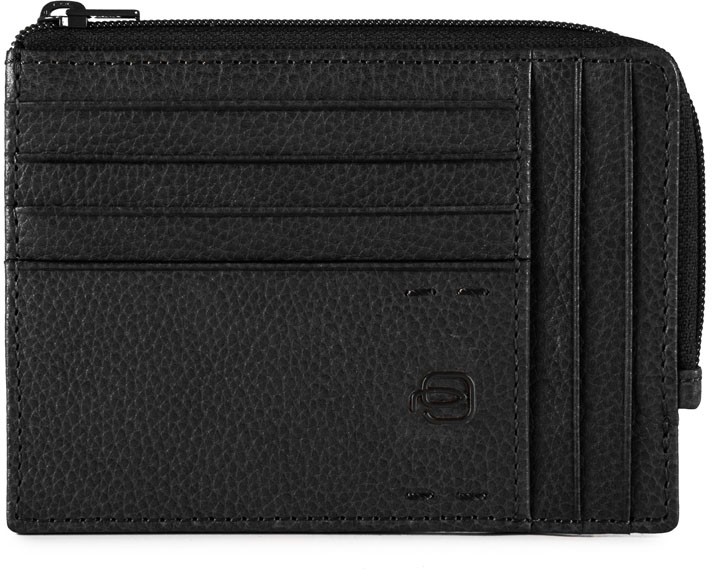PU1243P15S_N.Стильний аксесуар в дусі мінімалізму з колекції з колекції PULSE S.Матеріал виготовлення верха-щільна теляча шкіра з чітко вираженою фактурою.Підкладка-ковзаюча тканина,матеріал-поліестер. пластикових карт - по 6 штук з обох сторін. Осередки розміщені по 4-горизонтальні, по 2-вертикальні на кожній зі сторін. -водонепроникний, ковзний текстиль для більш комфортного вилучення карт. Відділення під блискавкою можна використовувати для купюр в зігнутому вигляді, або як монетницю. ялинка",фурнітури-чорний.
