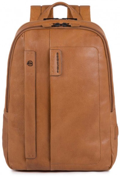CA3869P15S_CU. Компактний універсальний міський рюкзак з колекції PULSE S. Матеріал виготовлення верха-щільна теляча шкіра з чітко вираженою фактурою. Підкладка-ковзна тканина, матеріал-поліестер. щільної шкіри. Відділень-два. Закриваються пластиковими блискавками до половини. А4, має стаціонарний подвійний неопреновий чохол для гаджетів 13" і 10", гаджети фіксуються хлястиком на липучці. текстильної тасьми, яка фіксується до сумки на липучку. Чохол для парасольки та