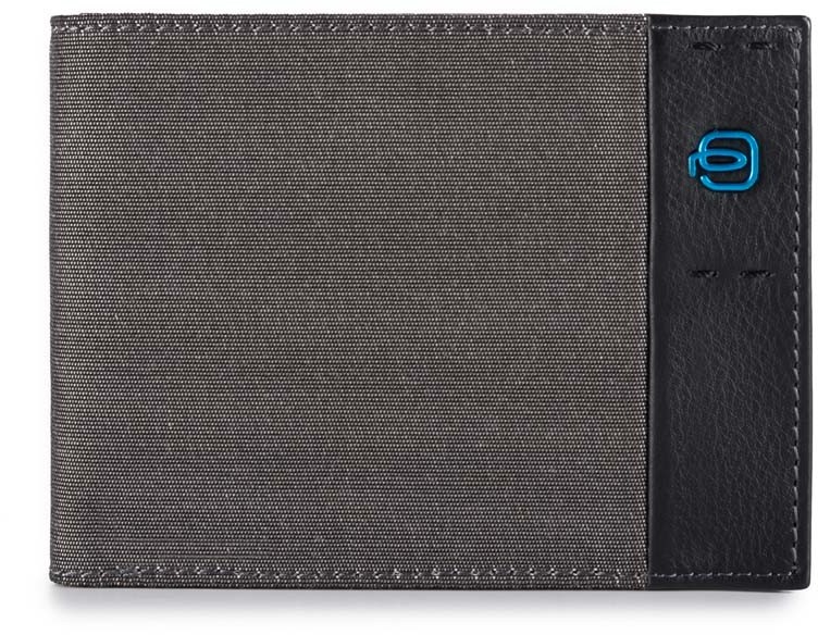 PU1241P16_CLASSY. Тонкий горизонтальний портмоне без монетниці з колекції PULSE16. -поліестер.Особливість моделі - вертикальна вставка зі шкіри лицьовій стороні. Розроблено за принципом книжки. Купюрниця розташована зверху-горизонтальна, має два відсіки, розрахована на купюри будь-якого номіналу будь-якої з валют, купюри завантажуються з одним згином. Колір верха-сірий,вставки шкіри-чорний,підкладка-сірий в принт "ялинка",металева фурнітура-чорний.