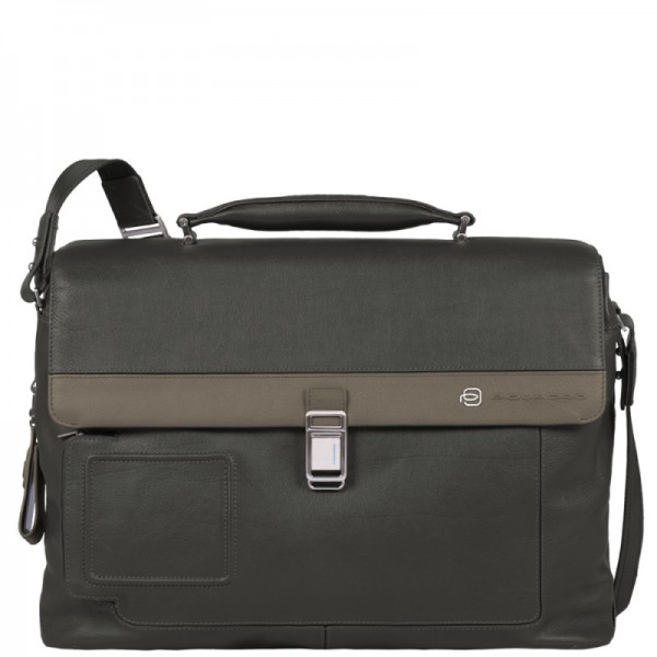 CA1045VI_GRTO. Практичний об'ємний портфель для роботи і недовгих відряджень з колекції VIBE. Матеріал виготовлення-м'яка теляча шкіра з натуральною фактурою, стійка до механічних пошкоджень. кишенька на блискавці із зовнішнім відстроченням у вигляді квадратика.Модель-некаркасна,але в стінках проставлений ущільнювач,що дозволяє зберігати форму виробу.Закривається портфель клапаном-кришкою до половини на одну металеву застібку-клавішу.Відділень-два,розділені щільною перегородкою. велика кишеня на пластиковій блискавці і дрібну організацію-кишеню для телефону, 3 відсіки для пишучого приладдя, знімна ключниця у вигляді шкіряного брелка з металевим кільцем, кріпиться до стінки відділення пластиковою клямкою. У другому відділенні - стаціонарний неопреновий подвійний чохол для гаджетів 13",гаджети фіксуються хлястиком на липучці і бол
