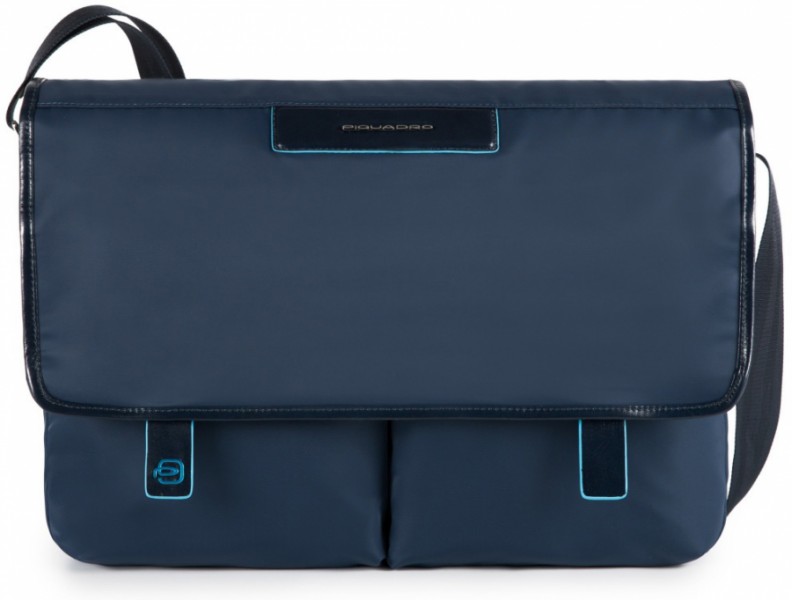 CA3172CE_BLU.Горизонтальная сумка-месенджер великого розміру з колекції CELION.Матеріал виготовлення верха-щільний нейлон на основі поліестеру. шкіряні елементи по краю запаяні вручну рідким каучуком яскравого блакитного кольору за унікальною запатентованою технологією компанії Piquadro. Сумка без внутрішньої застібки, закривається клапаном повністю на 2 щільних магніту. Відділень-одно. і 13", гаджети фіксуються хлястиком на липучці, з іншого боку - дрібна організація - дві прозорі кишеньки з сітки, дві дрібні кишеньки з текстилю різного розміру і 2 відсіки для ручок. Під клапаном - дві накладні подвійні кишені для швидкого доступу. сумки-велика кишеня на пластиковій блискавці та система кріплення на телескпічну ручку багажу на увазі широкий