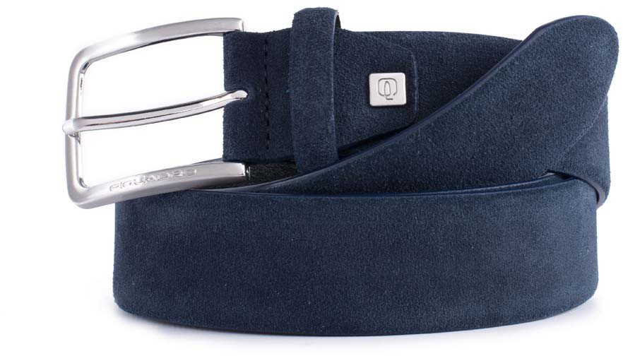 CU4559C63_BLU.Яскравий стильний ремінь із середньої ширини з колекції ременів Piquadro,підійде і для джинс,і для штанів.Матеріал виготовлення верха-оксамитовий замш на основі телячої шкіри,внутрішня частина-гладка теляча шкіра.Виготовлений з двох шар. -виготовлена з високоякісної сталі, має колір срібла з глянцевим блиском, і тиснення з назвою фірми. Форма пряжки-прямокутна, із закругленими кутами. На ремені є замшеве кільце для фіксації вільного краю. логотипа компанії, ремінь можна вкоротити самостійно, відкрутивши шуруп і відрегулювавши довжину. Ремінь має довжину 125см. і розрахований для штанів до 56 розміру.