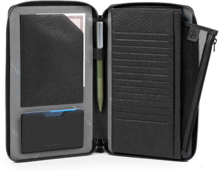 Сумочка Клатч PIQUADRO чорний LINE/Black Тревеллер на блискавці з відділ. для кред.карт із RFID захистом + клатч (14x22x2,5)