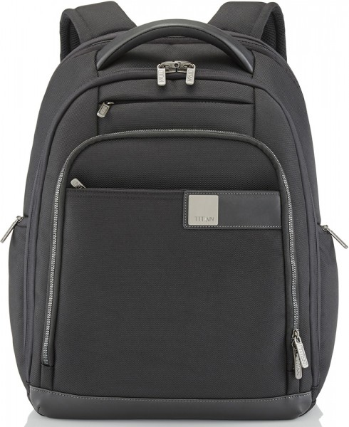 Рюкзак Titan POWER PACK Ti379501-01 чорний-міський рюкзак на три відділення з розширенням. Матеріал-поліестр. Одне відділення для ноутбука 15,6 дюймів і планшета, основне велике відділення та відділення-органайзер. Кріплення на телескопічну ручку валізи. Дихаюча спинка. Широкі регульовані ремені. Фурнітура-сталь хромована.