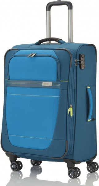 Travelite Meteor - класичний дизайн та надійна конструкція. Модель оснащена висувною ручкою з можливістю фіксації в кількох положеннях. Конструктивно передбачені дві ручки (для горизонтального та вертикального перенесення). Зовнішня кишеня на блискавці забезпечує швидкий доступ до документів. Внутрішній простір оснащений кишенею та пакувальними ременями. Тильна сторона доповнена кишенею. Функція розширення. Вбудований кодовий замок TSA. Чотири подвійні роликові коліщатка. Об'єм: 69/79 л. Вага: 3,1 кг. Розмір M: 42x66x27/31см. Матеріал: текстиль. Колір – Petrol (синій). Виробник: Німеччина. Гарантія – 2 роки