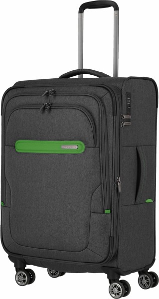 Валіза середнього розміру-найоптимальніший варіант для двох. Сучасний дизайн та лаконічний сірий колір із зеленою вставкою та емблемою бренду. Модель володіє одним великим внутрішнім відділенням з фіксуючими ременями, і двома автономними кишенями на лицьовій частині для різних дрібниць. Зручність перенесення забезпечать дві ручки-верхня та бічна, а комфорт пересування - висувна телескопічна ручка та чотири здвоєні, роликові колеса з відмінною ергономікою. Матеріал-надзвичайно еластичний і легкий поліестер, простий у догляді. Вбудований TSA замок, з кодовим блокуванням убезпечать ваш багаж, а надійні блискавки захистять від проникнення вологи та пилу. Розміри-42*67*27/31, вага-2,6 кг, об'єм-60/71 л.