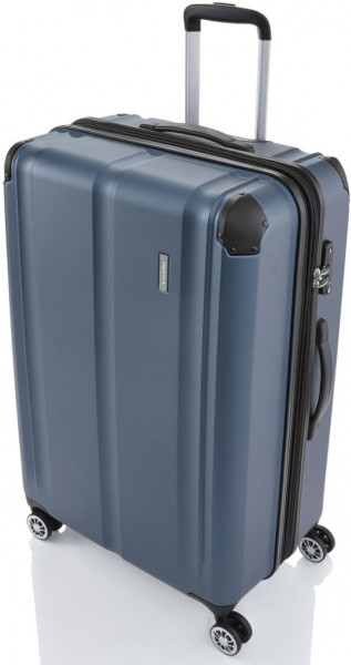 Великий, дуже місткий чемодан-оптимальний сімейний варіант. Матова фактурна поверхня, витончений дизайн та спокійний синій колір. Внутрішній простір має дві окремі речові камери з фіксуючими ременями, та додатково функція розширення. Чотири здвоєні, ергономічні колеса подарують вам плавний і безшумний хід. Прогумована блискавка захистить від попадання вологи, а TSA замок із кодовим блокуванням забезпечить безпеку багажу. Телескопічна ручка для переносу розташовані вертикально. Матеріал-ABS пластик, жорсткий, зносостійкий та міцний, не залишає подряпин та слідів. По верхніх боках валіза укріплена пластиковими накладками. Розміри-49*77*32, об'єм-113/124, вага-4,5 кг.