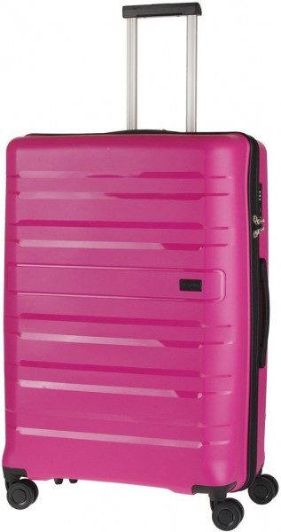 Валіза Travelite KOSMOS TL073949-17 рожевий-матеріал валізи-поліпропілен, механізм-блискавка (прогумована). 4 подвоєних колеса прогумованих на підшипниках. Текстура поверхні-антідрапини. Ергономічна телескопічна ручка. .Кілька внутрішніх відсіків.TSA-замок. Розмір L-великий 52х77х29, об'єм-102л,вага-4,1 Країна реєстрації бренду:Німеччина Країна виробник:Німеччина Гарантія 3 роки