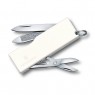 Ніж Victorinox TOMO Vx06201.A758мм/5функ/бел /ножн - оригінальний складаний ніж. Елегантний дизайн, колір-білий. Матеріал накладки-спеціальний пластик, леза-нержавіюча сталь. Ніж містить 5 предметів, що виконують 6 функцій. В наявності такі предмети - ніж, кільце для ключів і пилка для нігтів, ножиці, пінцет і зубочистка, ніж.