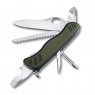 Ніж Victorinox SWISS SOLDIER'S KNIFE Vx08461.MWCHB1 - швейцарський складаний ніж, розмір - великий. Матеріал-нержавіюча сталь. Колір рукояті-зелений з чорним, накладка виконана з пластику, поверхня-матова, зручно лежить у руці. Ніж має 7 елементів і виконує 10 функцій - велике лезо з легким відкриттям однією рукою, пила по дереву, викрутка, пляшка і для консерви, шило, викрутка, кільце для ключів. Упаковка блістер. Висота-111 мм.